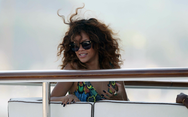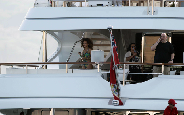 Την εμφάνιση αυτήν την έκανε καθώς απέπλεε για την ακτή της Γαλλικής Ριβιέρας με το πολυτελές γιοτ που νοικιάζει 200,000 δολάρια την εβδομάδα.