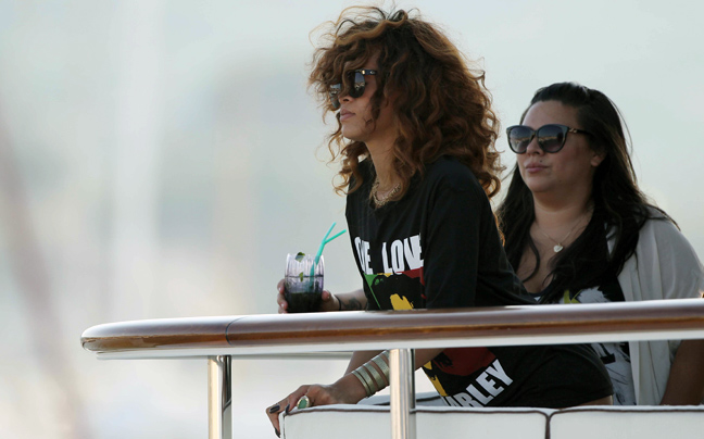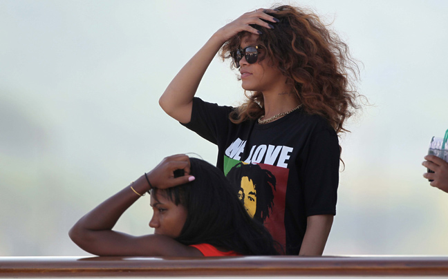 Μετά την εμφάνιση με το μαγιό η Rihanna φόρεσε μια μαύρη μπλούζα που απεικονίζε τον θρυλικό Bob Marley.