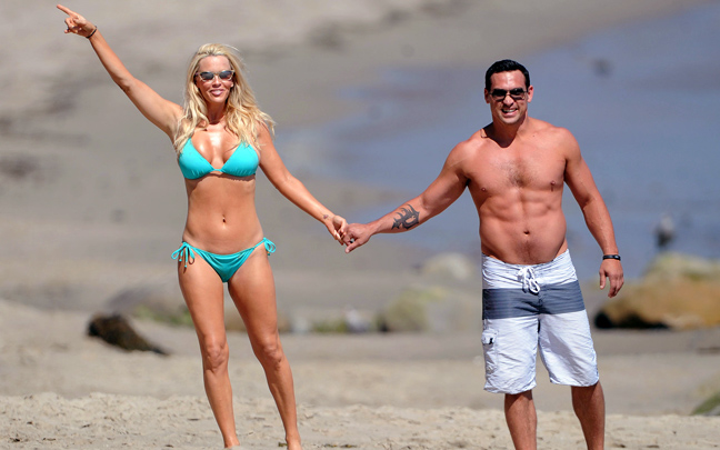 Αν και οι εποχές που πόζαρε στο «Playboy» έχουν περάσει ανεπιστρεπτί, οι σέξι καμπύλες της παραμένουν το ατού της εμφάνισής της. Παρέα με τον φίλο της, Paul Krepelka, έκανε τις βουτιές της σε παραλία του Μαλιμπού.