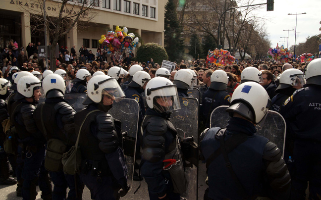 Η ομαδική μούντζα μαθητών προς τους επισήμους που κάθονταν στην εξέδρα σημάδεψε τη χθεσινή παρέλαση στα Ιωάννινα για τον εορτασμό της απελευθέρωσης της πόλης από τους Τούρκους.
